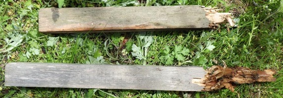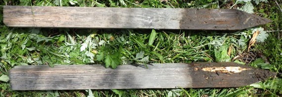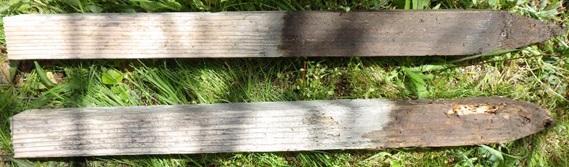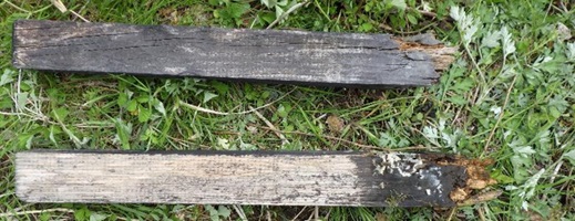 他社製AAを塗った杭は激しい腐朽とシロアリの被害のため、2本とも折れてしまいました。